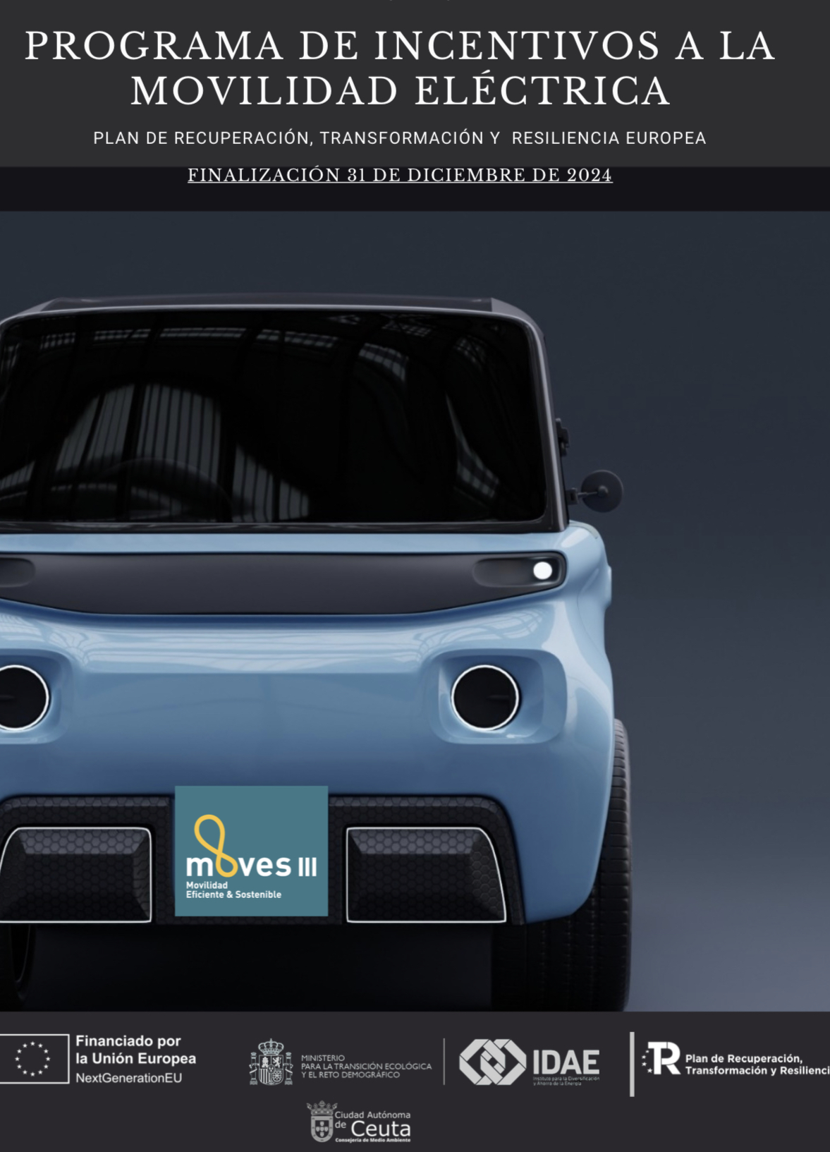 La Oficina del Cambio Climático y Rehabilitación Energética de Ceuta, gestionada por Tragsatec a través de un encargo de la Consejería de Fomento, Medio Ambiente y Servicios Urbanos, informa que hasta el próximo 31 de diciembre permanece abierta la convocatoria de ayudas del Plan MOVES III. Este programa, financiado en el marco del Plan de Recuperación, Transformación y Resiliencia, ofrece subvenciones para la adquisición de vehículos eléctricos y la instalación de puntos de recarga.