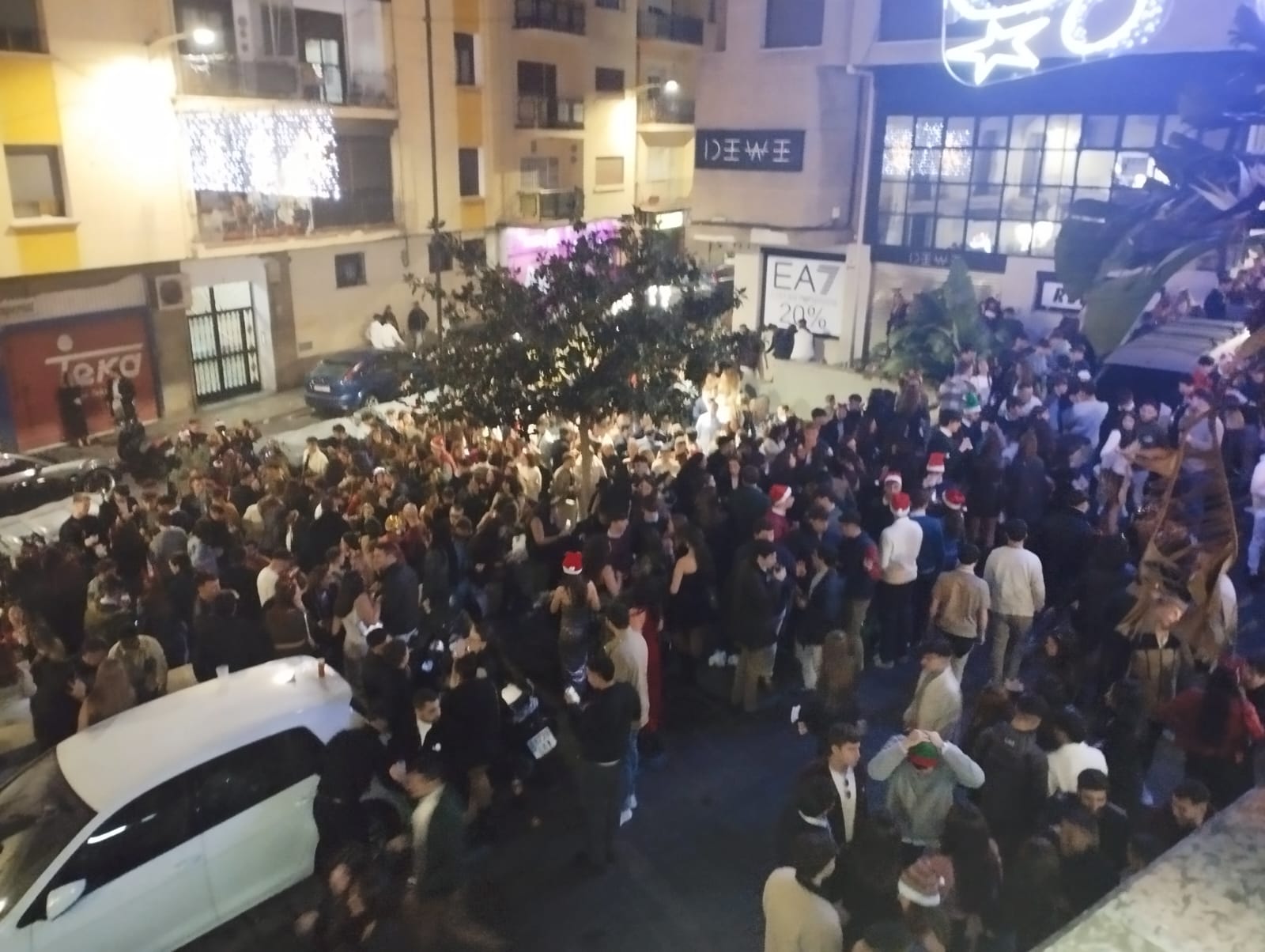Sin embargo, la afluencia fue tal que la “plazoleta del Tokio” no daba abasto, aunque hubiera menos personas que en años anteriores, y muchos jóvenes, contagiados por el espíritu festivo, optaron por extender la celebración a las calles cercanas. La plaza se convirtió en un bullicioso punto de encuentro, donde la gente se congregaba para disfrutar de la música y la compañía.