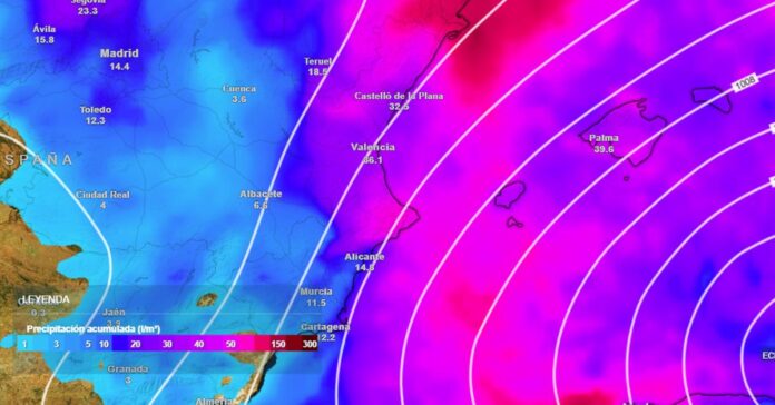 El intenso flujo de aire húmedo desde el Mediterráneo favorecerá la persistencia de las precipitaciones. Según Aemet, la situación se agravará el martes 20, con un incremento de la intensidad del viento alrededor del mar balear.