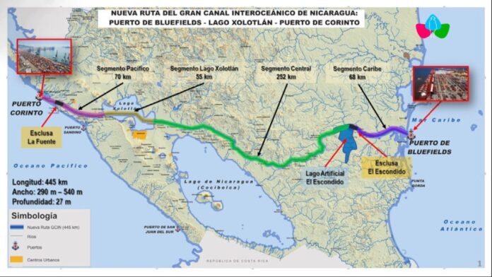 En 2013, la compañía hongkonesa HKND Group, vinculada al empresario chino Wang Jing, recibió una concesión para planificar, diseñar y construir un Gran Canal en Nicaragua, que incluiría una ruta de casi 278 km y puertos en ambos océanos. Sin embargo, el proyecto enfrentó problemas financieros, falta de inversión y serias controversias ambientales y sociales, lo que condujo a la cancelación oficial de la concesión por parte del Congreso nicaragüense en mayo de 2024.