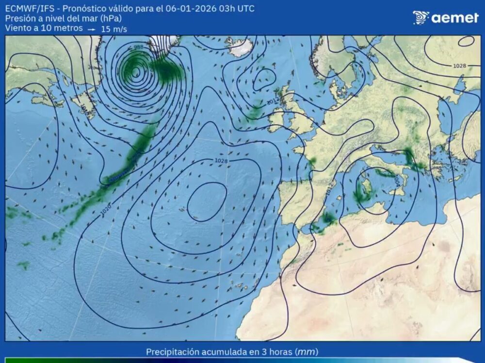 La siguiente amenaza es la borrasca Goretti. Su desarrollo será especialmente veloz, caracterizado por una caída abrupta de la presión atmosférica en pocas horas típica de una ciclogénesis explosiva. Aunque su núcleo más intenso afectará principalmente al Atlántico norte y las costas francesas, España comenzará a percibir sus efectos desde mañana: