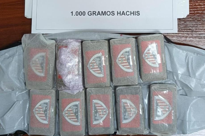 Durante el registro, se descubrió que la mujer llevaba adheridas a su torso diez placas de hachís, con un peso total aproximado de un kilogramo. Los paquetes de droga estaban marcados con el logotipo del escudo del equipo de fútbol de Tetuán, lo que ha llamado la atención de los agentes.