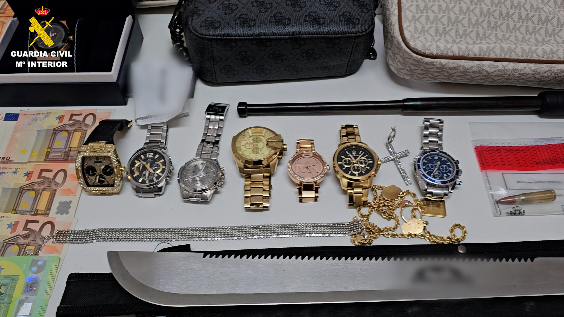 También se han incautado joyas, relojes, material informático y electrónico así como documentación falsa utiliza por los presuntos autores y documentación de terceros, tarjetas bancarias a nombre de víctimas de extorsión y mulas económicas.