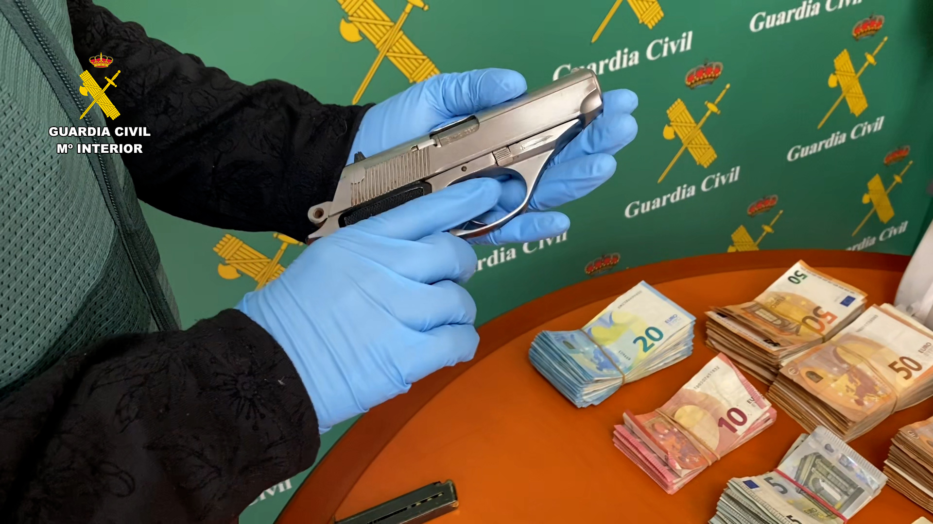 La Guardia Civil ha realizado cinco registros, cuatro en la provincia de Málaga y uno en Valencia, donde han encontrado un arma corta de fuego real con dos cargadores municionados, otro cargador de altas capacidades municionado, más de 86.000 euros en efectivo, joyas de alto valor y numerosos móviles con los que realizaban las transacciones.