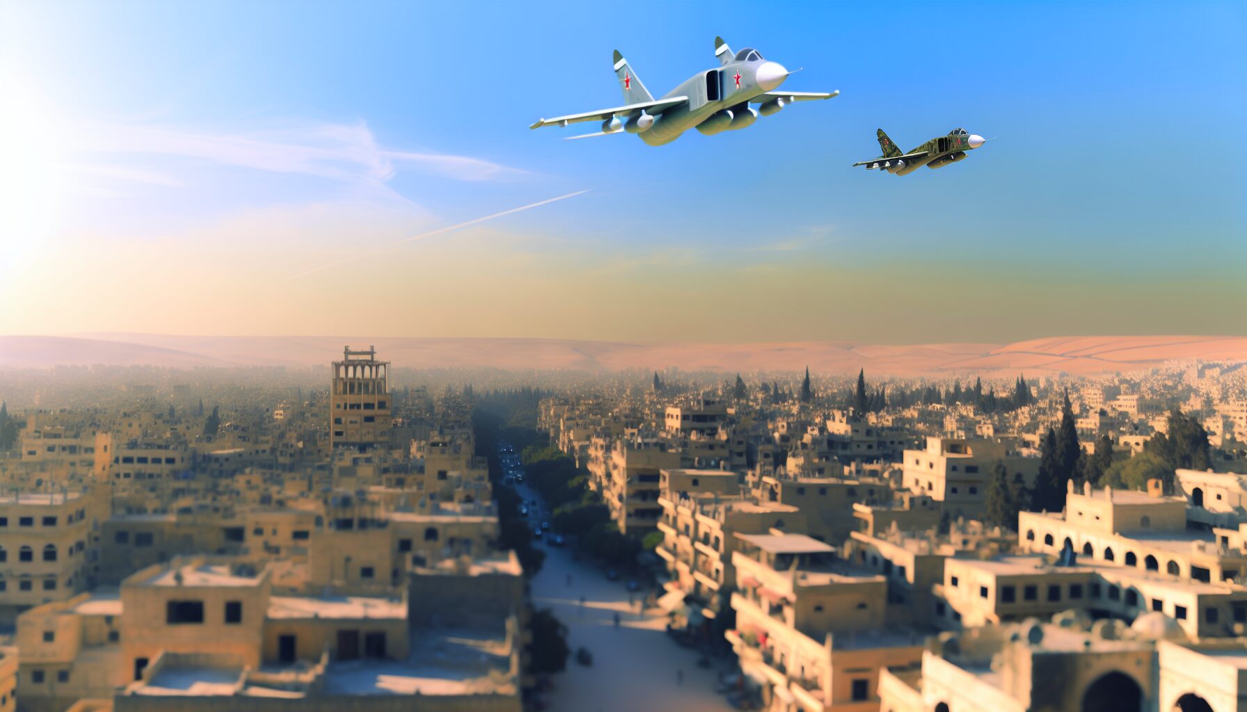 En 2015, Rusia intensificó su apoyo al régimen de Bachar al Asad en Siria mediante una intervención militar decisiva. La aviación rusa comenzó a bombardear a las milicias opositoras, lo que permitió al gobierno sirio recuperar terreno perdido. Este movimiento fue justificado por Vladímir Putin como una medida preventiva contra el terrorismo, similar a sus acciones en Chechenia.