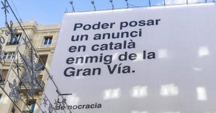 Ejemplos polémicos: mensajes en catalán en la Gran Vía y otros