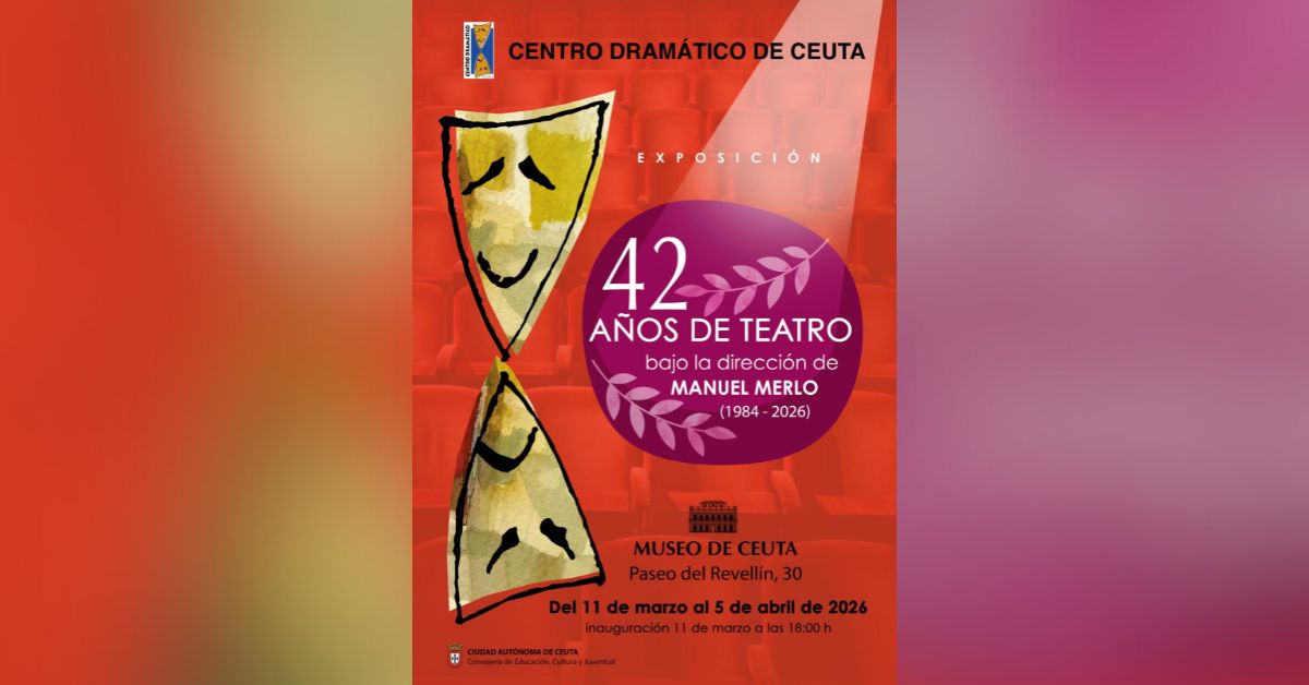 CEUTA – La escena cultural ceutí celebra hoy un hito con la inauguración de una exposición dedicada a la trayectoria del teatro local. A las 18:00 horas, el Museo de Ceuta, ubicado en el Paseo del Revellín, inaugura “42 años de teatro bajo la dirección de Manuel Merlo”, una exhibición disponible desde el miércoles 11 de marzo hasta el 5 de abril. Esta exposición rinde homenaje a la labor del Centro Dramático de Ceuta, entidad que recientemente cumplió más de cuarenta años.