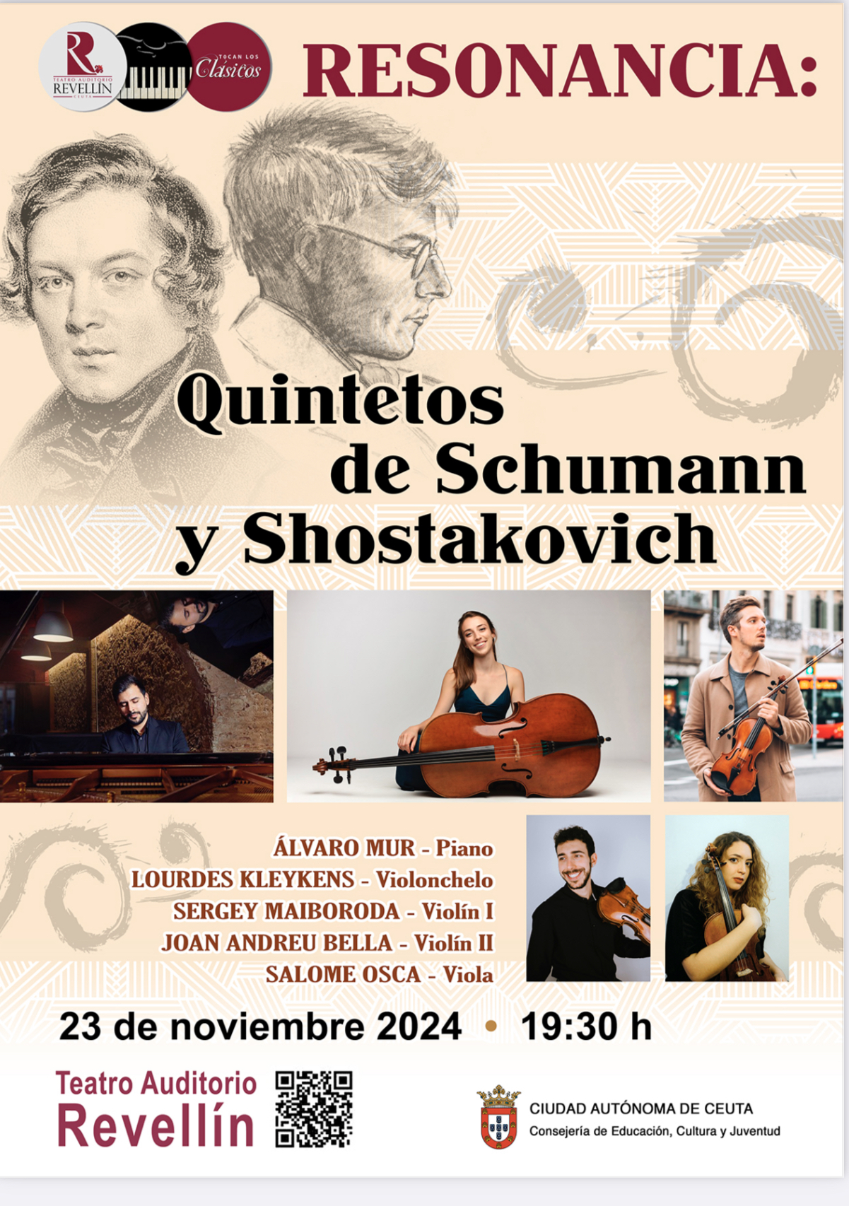 La Consejería de Educación, Cultura y Juventud ha recordado que aún hay entradas disponibles para el concierto ‘Resonancia: Quintetos de Schumann y Shostakovich’, que se celebrará este sábado, 23 de noviembre, a las 19:30 horas en el Teatro Auditorio del Revellín.