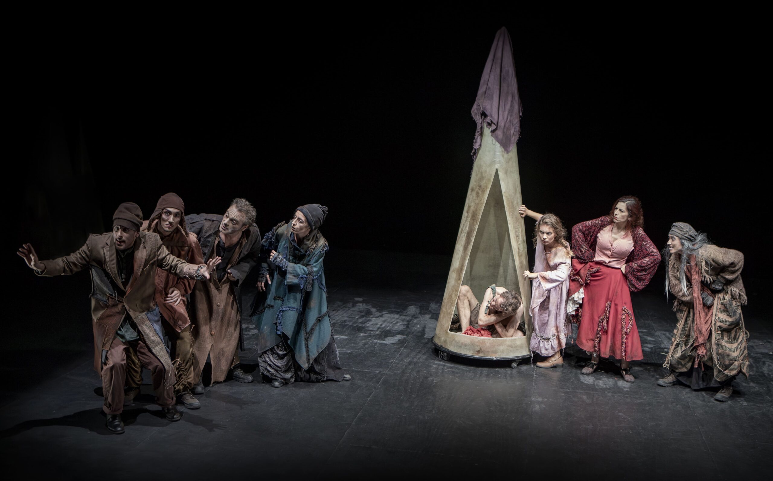 Dirigida por Ricardo Iniesta, fundador de Atalaya y Premio Nacional de Teatro, esta adaptación de Divinas Palabras reinterpreta el universo grotesco de Valle-Inclán desde una perspectiva contemporánea. La puesta en escena combina un ritmo vertiginoso, una estética visualmente poderosa y una banda sonora original que intensifica el dramatismo de la obra.