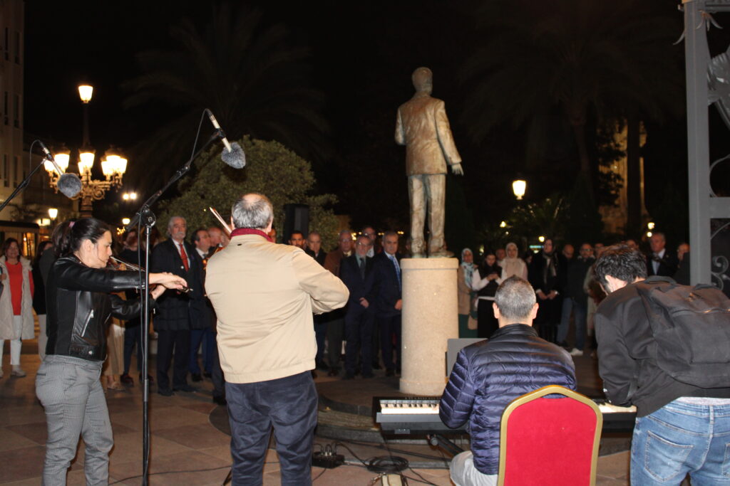 Esta tarde, a las 20:30 horas, la estatua de Sánchez Prado fue el escenario de un conmovedor acto organizado por el Colegio de Médicos de Ceuta, liderado por el destacado médico Enrique Roviralta. La ceremonia reunió a destacadas personalidades, incluyendo al presidente de la ciudad, Juan Vivas, y la Consejera de Sanidad, Nabila Benzina.