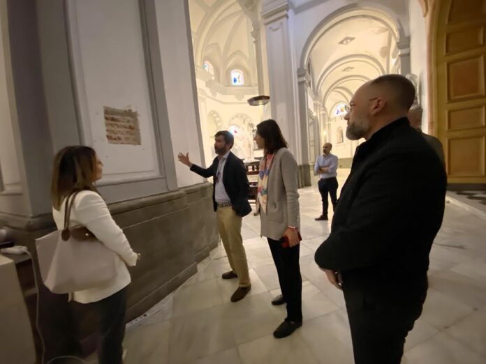 La consejera de Educación, Cultura y Juventud, Pilar Orozco, y el asesor delegado de la Consejería, Eduardo Ayala, acompañados por el vicario de Ceuta, Francisco Jesús Fernández Alcedo, el arquitecto de la Diócesis, Antonio Sánchez Casas y la ecónoma del Obispado de Cádiz y Ceuta, Carmen Lobato, han inspeccionado este jueves los trabajos previos a la restauración que se están realizando en el interior de la Catedral de la Asunción.