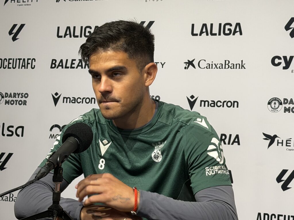El jugador del AD Ceuta FC, Kuki Salazar, compareció en rueda de prensa en la previa del importante encuentro ante el Racing Club de Santander, líder de la categoría, dejando mensajes de ambición pese a tener ya asegurados los 50 puntos.