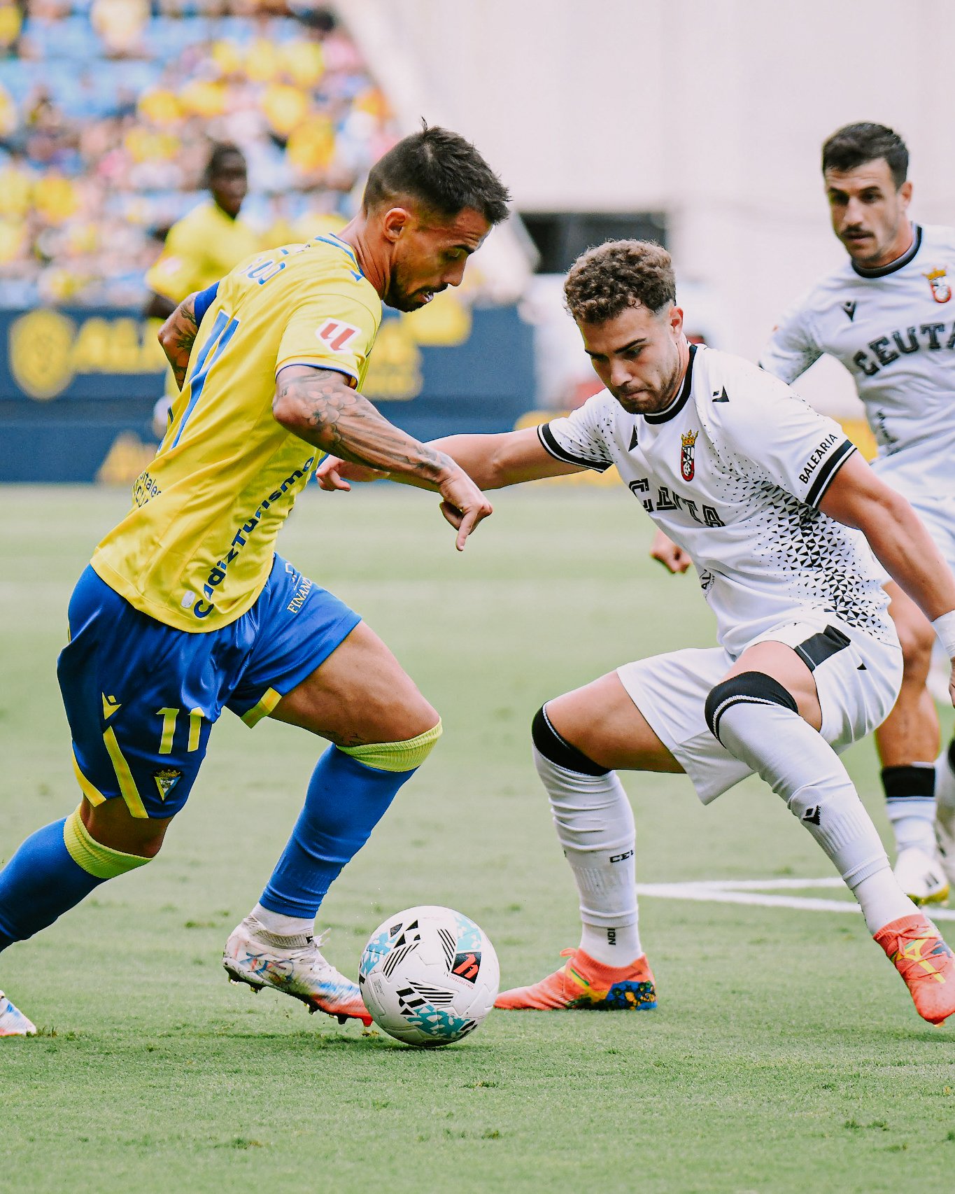 El Cádiz, pese a su condición de líder, apenas inquietaba a Guille Vallejo, salvo por un disparo lejano de Tabatadze que obligó al portero caballa a intervenir. La segunda mitad comenzó con mayor ímpetu de los locales, especialmente a través de Suso, que fue el motor ofensivo gaditano. No obstante, el Ceuta respondió con cambios que aportaron frescura: Konrad debutó, y tanto Salvi como Cristian dieron profundidad al ataque.
