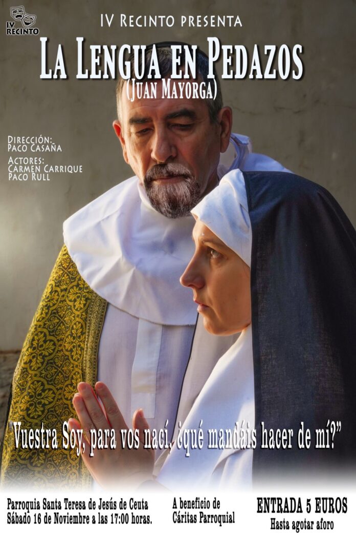 El próximo 16 de noviembre, la Compañía Cívico-Militar de Teatro IV RECINTO de Melilla se prepara para llevar a escena la obra “La lengua en pedazos”, escrita por el reconocido dramaturgo Juan Mayorga. La representación tendrá lugar en la parroquia de Santa Teresa de Jesús a las 5 de la tarde y está basada en la vida de Santa Teresa de Jesús, una figura emblemática del misticismo y la espiritualidad.