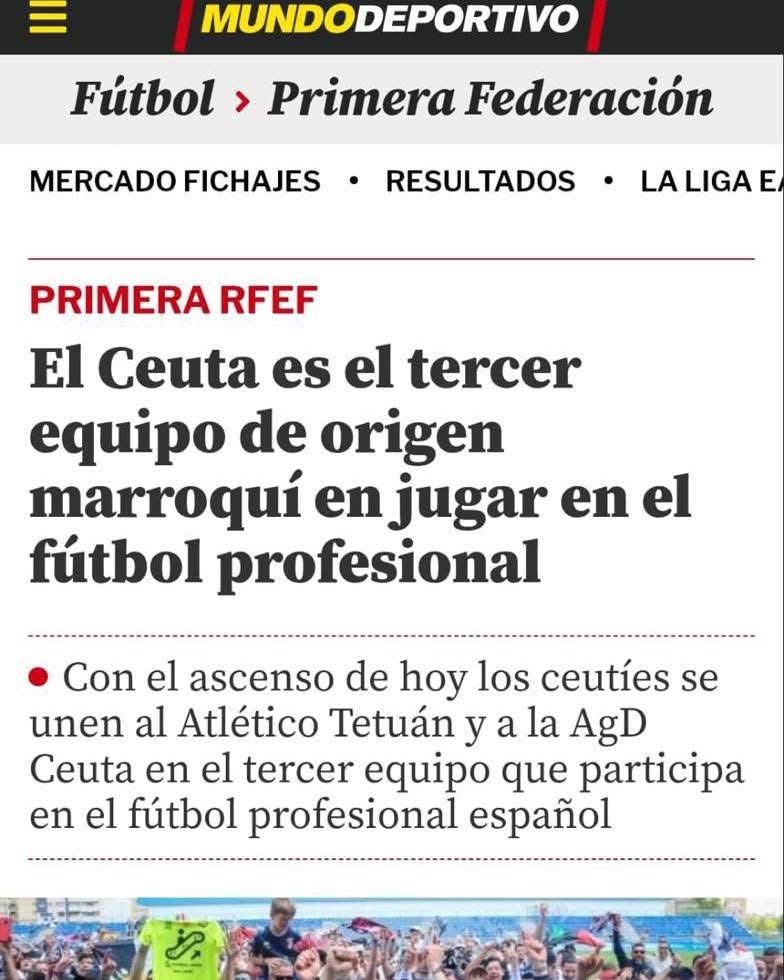 La Real Federación de Fútbol de Ceuta ha emitido un comunicado oficial en el que condena categóricamente el titular publicado por el medio catalán Mundo Deportivo, donde se califica al AD Ceuta como el “tercer equipo de origen marroquí en jugar en el fútbol profesional”.