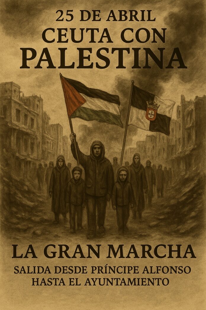 Ceuta, 11 de abril de 2025 – La Plataforma Ceuta con Palestina ha convocado a toda la ciudadanía a participar en una gran manifestación el próximo jueves, 25 de abril, en solidaridad con el pueblo palestino. Bajo el lema “Ceuta con Palestina, siempre”, la movilización busca denunciar el genocidio en Gaza, exigir un alto el fuego inmediato y reivindicar el respeto a los derechos humanos y a las resoluciones internacionales.