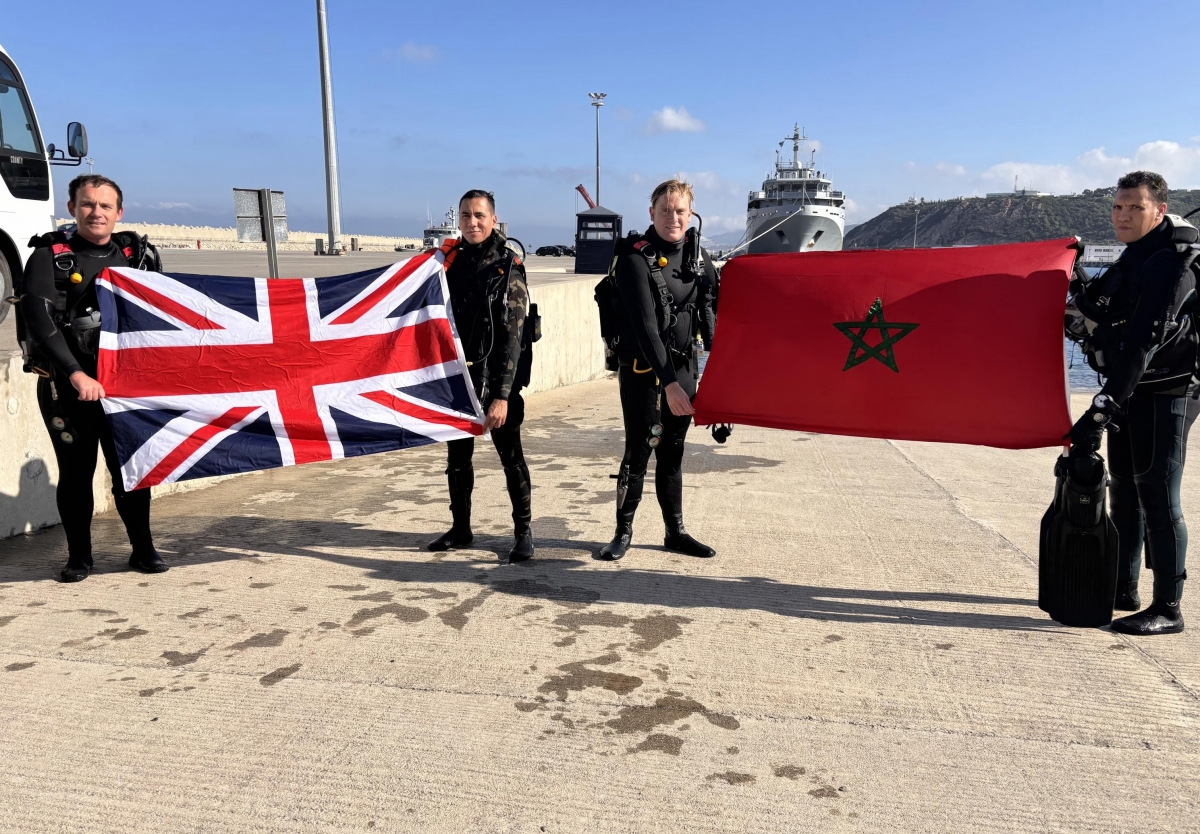 A su llegada al puerto militar de Ksar Sghir, ubicado a unos 30 kilómetros de Tánger, los submarinistas británicos se reunieron con miembros de la escuela de buceo de la Marina Real, liderados por el comandante Mounir Tamim. Este encuentro se produjo tras un homenaje a los caídos, donde participaron autoridades diplomáticas británicas, australianas y sudafricanas, subrayando la dimensión internacional del evento.