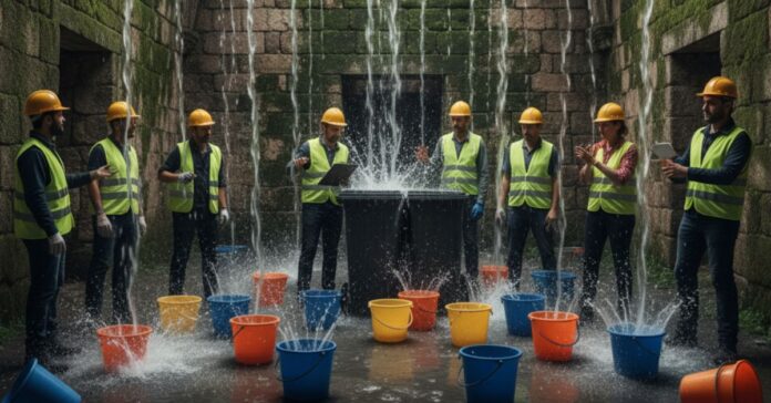 Nota de Ceuta Today: Esta información utiliza el humor para visibilizar una situación preocupante: el deterioro del patrimonio histórico. Si bien los cubos no son una solución definitiva, la conservación de los monumentos requiere medidas integrales. Nuestro legado histórico no puede sostenerse sobre depósitos improvisados de agua. El patrimonio es parte esencial de la identidad de Ceuta y está sufriendo filtraciones, desprendimientos y ausencia de una gestión adecuada.