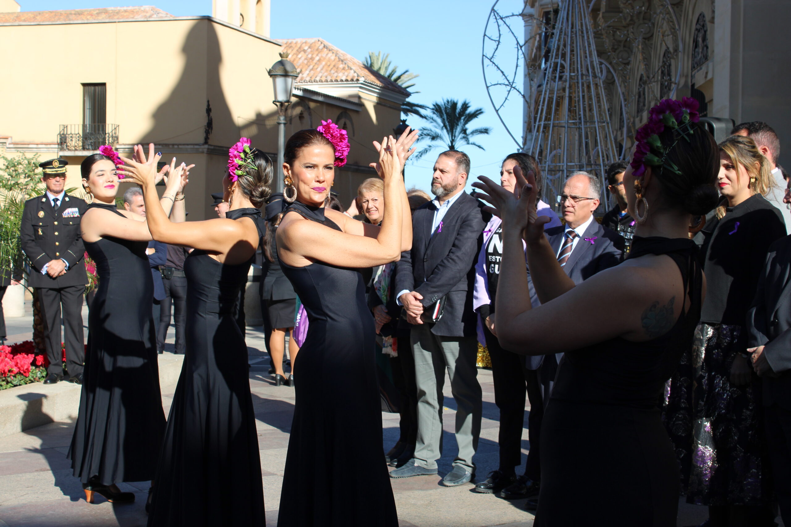 Para finalizar la jornada, todos los asistentes, en los que se encontraban representantes políticos de la ciudad salieron al exterior del Palacio Autonómico para ver la actuación de la Academia Allego, perteneciente a Natalia Cabezón, que hicieron un baile flamenco. Una vez más el a