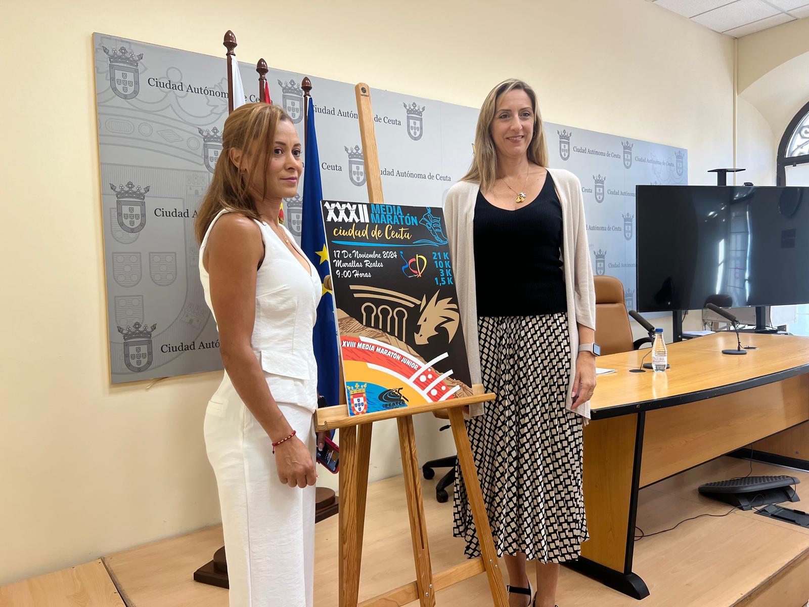 Este lunes, la directora gerente del Instituto Ceutí de Deportes (ICD), Araceli García, junto con Samira Mhamdi, técnica de la Federación de Atletismo de Ceuta, han presentado oficialmente la XXXII edición de la Media Maratón Ciudad de Ceuta. La rueda de prensa tuvo lugar en la Sala de Prensa del Palacio de la Asamblea, donde se anunciaron las novedades de este año, así como la colaboración del ICD con la federación local de atletismo en la organización del evento.