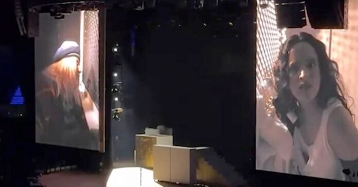 La escena, proyectada en las pantallas del recinto, mostraba a ambas en el interior de un confesionario, recreando un diálogo similar al de un sacerdote y un feligrés. En este espacio, la ‘influencer’ compartió con la cantante algunos detalles personales sobre una relación pasada.