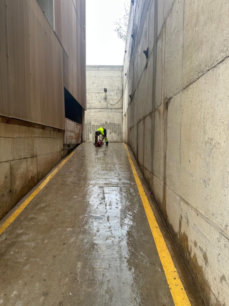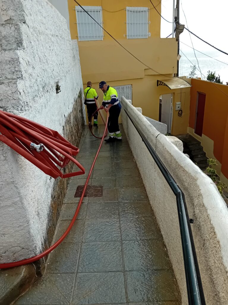 Durante la jornada de este lunes, operarios de Servilimpce llevaron a cabo un baldeo en profundidad en varias zonas, entre ellas Sarchal, las Torres, la urbanización del Monte Hacho y el Pasaje Recreo.