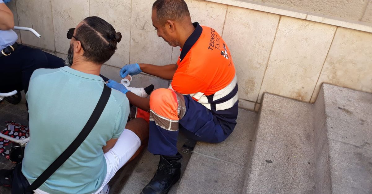Enseguida se han presentado en el lugar los servicios de emergencias porque el accidente podía haber tenido consecuencias más graves. La mujer se ha sentido mareada y le han vendado tobillo y una pierna, para después ser conducida al hospital por los Servicios Sanitarios de Transporte Terrestre, contratados por el INGESA.