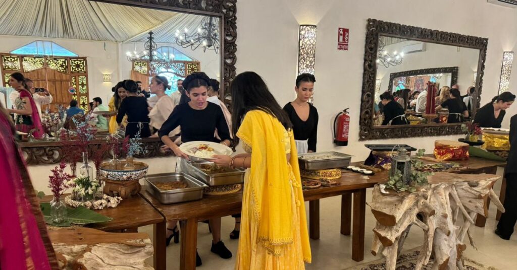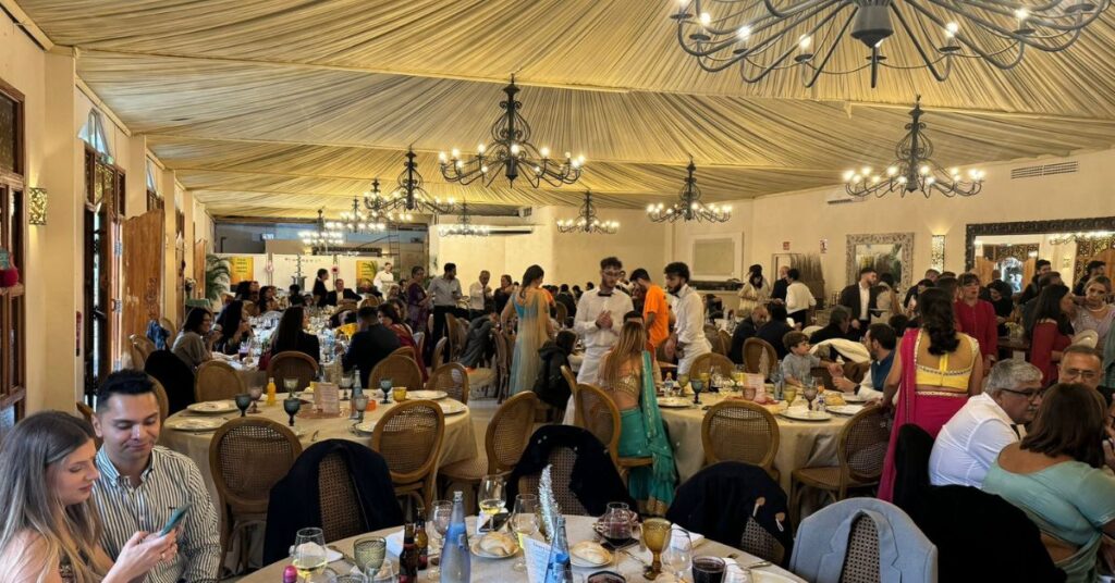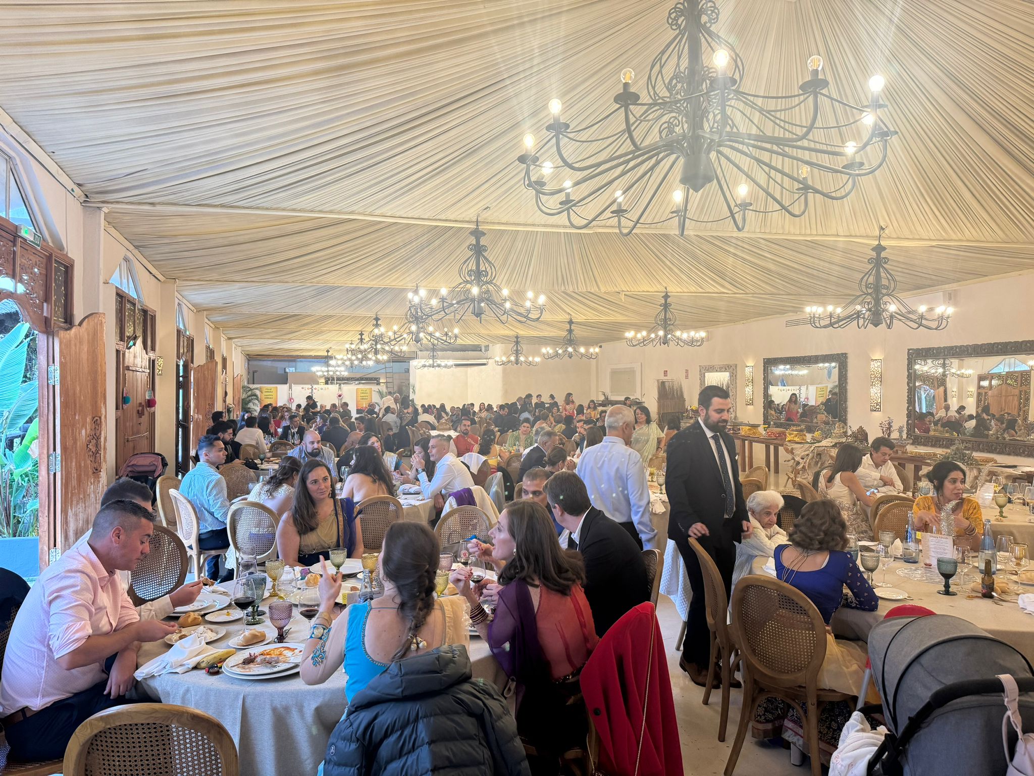 El banquete del que reproducimos las imágenes se ha celebrado en Sarao Jardines en un ambiente de gala y de concordia familiar. El Diwali también es una celebración de la diosa hindú de la riqueza y la buena suerte, Lakshmi. En la antigua sociedad agraria de la India, el Diwali coincidía con la última cosecha antes del invierno, una época en la que rezar a Lakshmi para pedirle buena fortuna. En la actualidad, las empresas indias aún consideran el Diwali el primer día del nuevo año fiscal.