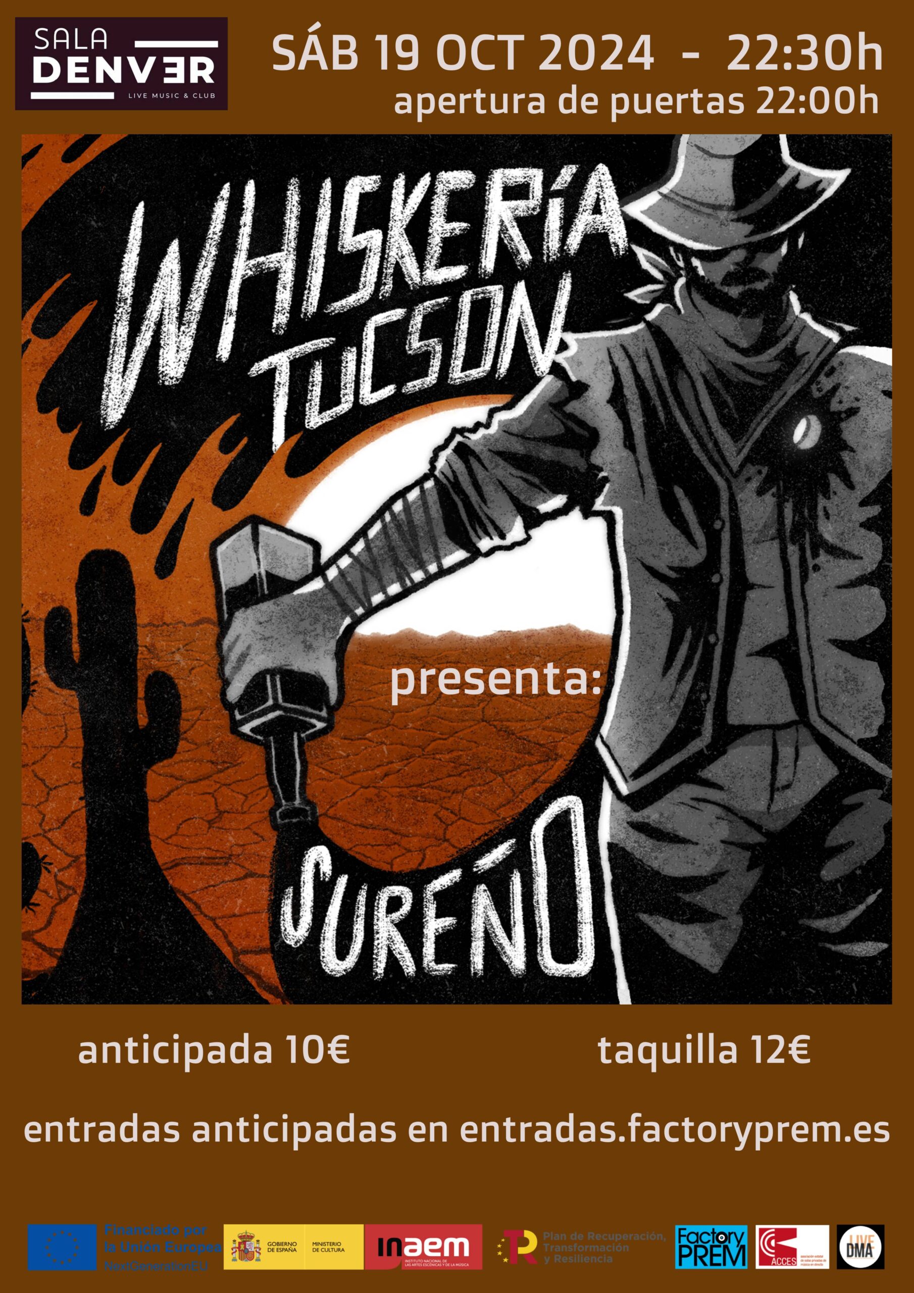Este sábado, La Sala Denver será testigo de la llegada de Whiskería Tucson, una banda malagueña que ha conseguido revivir el sonido del mejor rock sureño. Fundada en 2020, Whiskería Tucson no ha dejado de crecer y sorprender con su estilo que evoca los paisajes desérticos y los pantanos del sur de Estados Unidos, mientras mantiene un inconfundible sello andaluz. El grupo actuará a las 22:30 horas, con apertura de puertas a las 22:00 horas, y las entradas ya están a la venta.