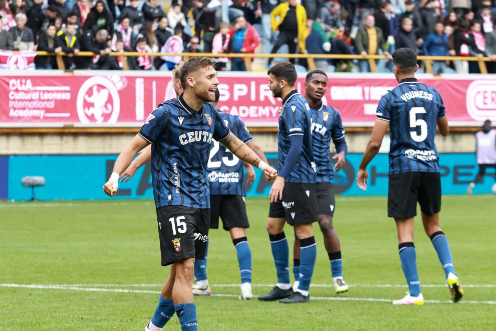 León, 19 de octubre de 2025. — La AD Ceuta FC sigue en estado de gracia. El equipo de José Juan Romero logró este sábado una importante victoria (0-1) frente a la Cultural y Deportiva Leonesa en el estadio Reino de León, firmando su primer triunfo de la temporada a domicilio y ampliando su excelente dinámica a ocho jornadas consecutivas sin conocer la derrota, con seis porterías a cero seguidas.